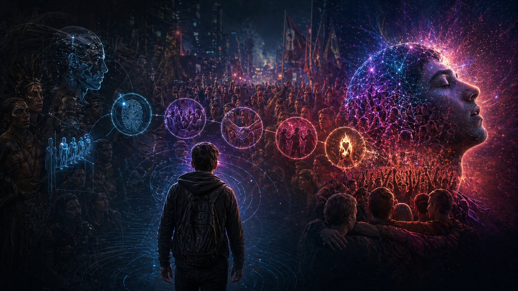 La couche “données” relie votre parcours personnel aux dynamiques globales : signaux faibles, cascades historiques, simulation de polarisation — et le vieux cerveau tribal caché sous les interfaces contemporaines.